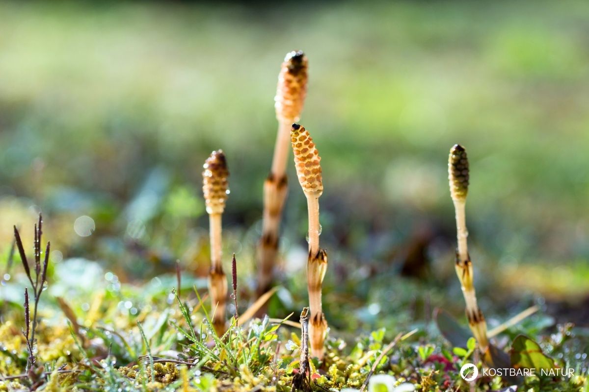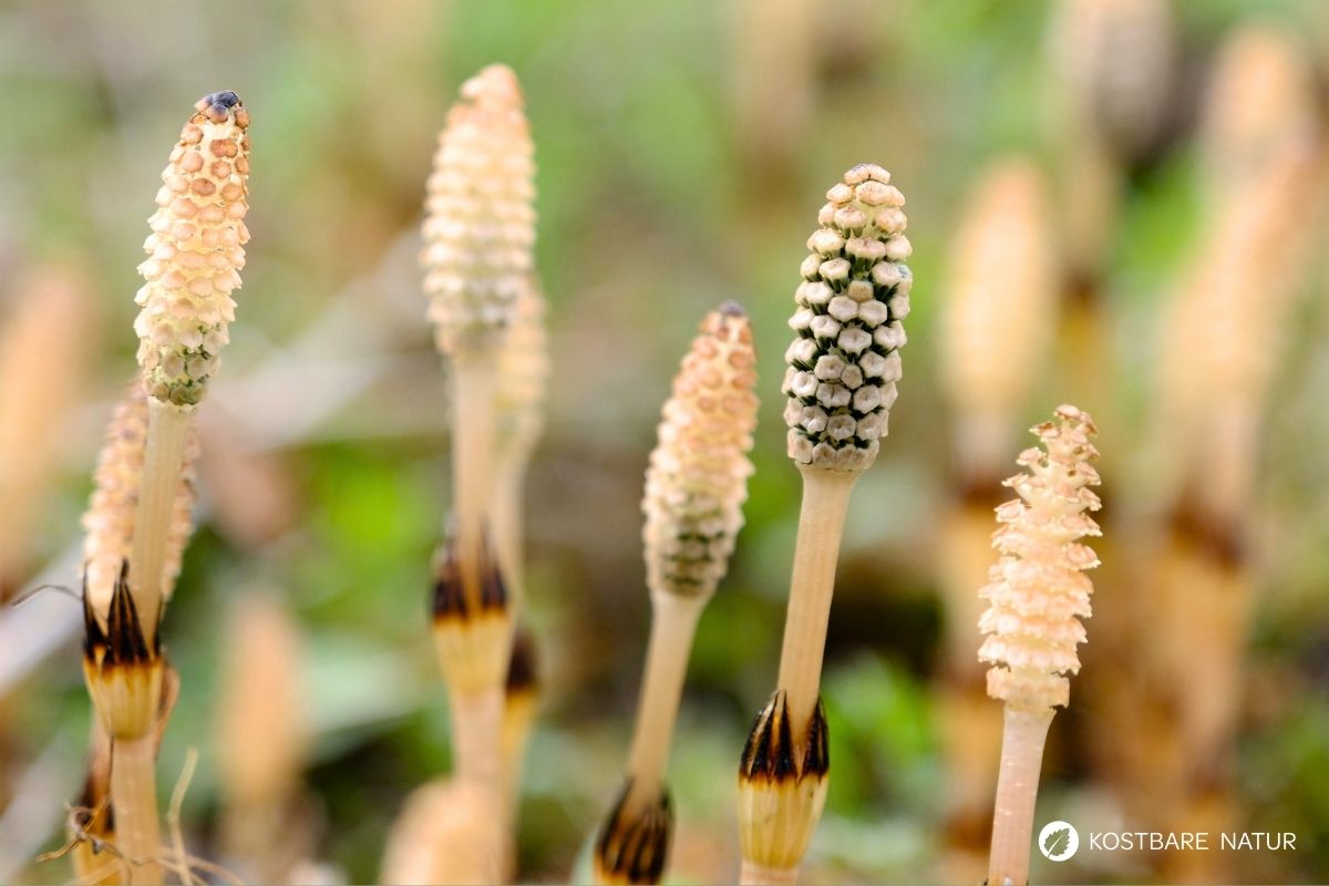 - urtümliche, gegliederte, hohle Triebe, im Sommer grün und quirlig verzweigt, im Frühjahr braune Sporenstände.
