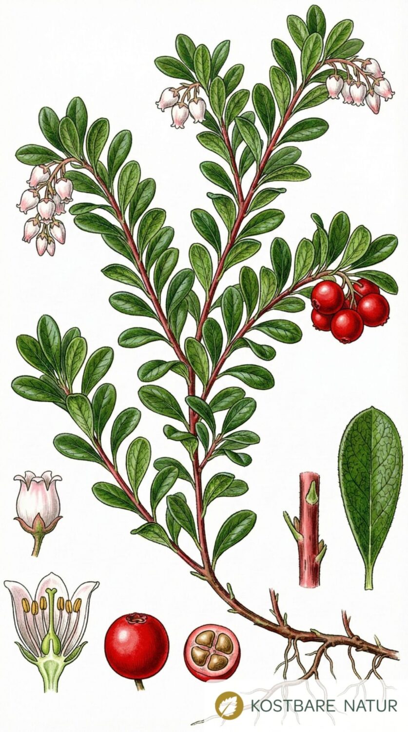 Die Bärentraube (Arctostaphylos uva‑ursi), im Volksmund auch Bärenkraut, wird traditionell bei Harnwegsbeschwerden verwendet. Die Hauptwirkung beruht auf antibakteriellen, leicht adstringierenden Eigenschaften, vor allem dank des enthaltenen Arbutins. Du kannst sie als Tee, Extrakt oder Tinktur nutzen.
