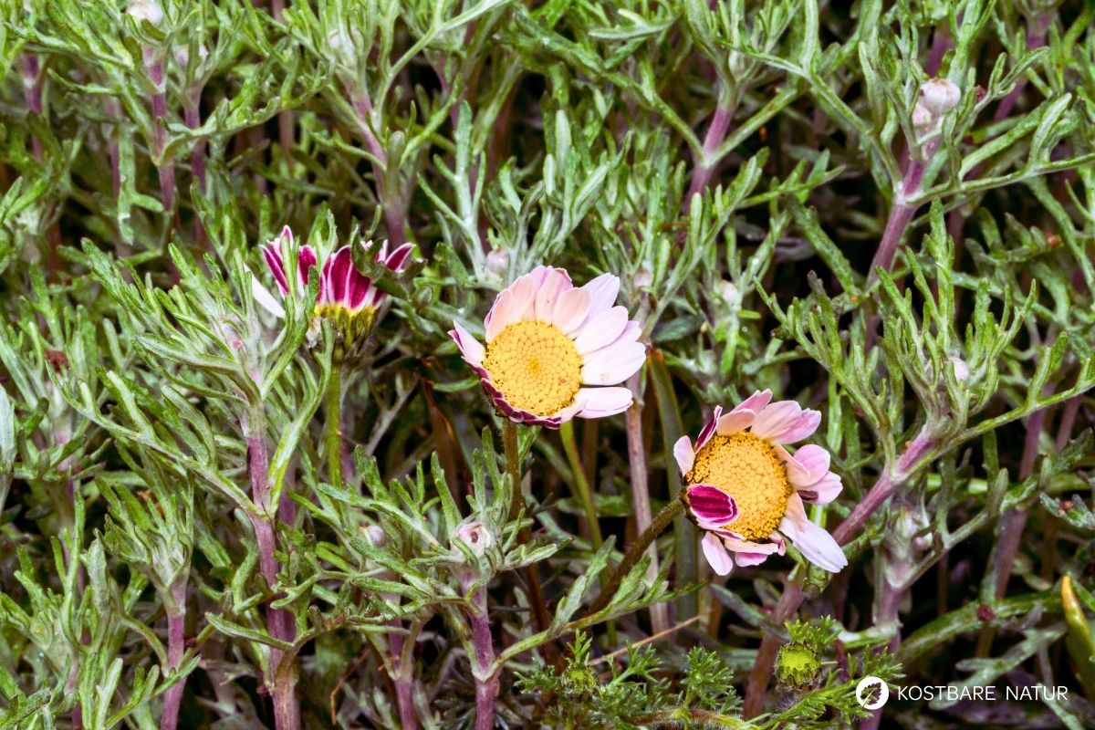 - Die Blätter sind fein gefiedert und erinnern etwas an Kamillenblätter. Sie wirken weich und zart.