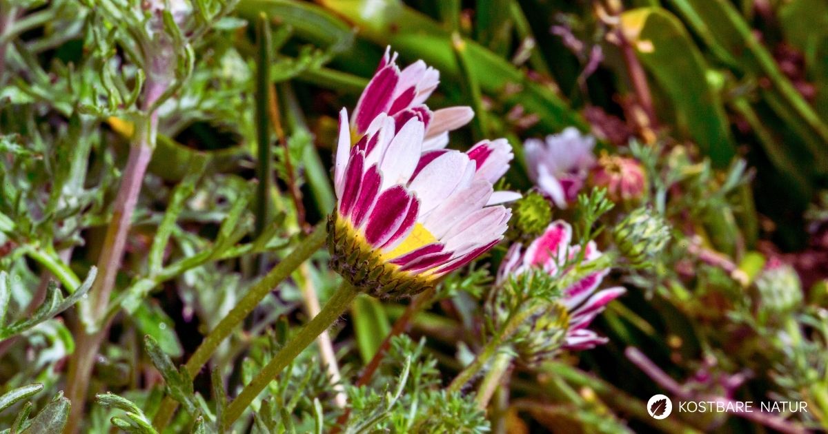 Der Bertram gehört zur Familie der Korbblütler und erinnert auf den ersten Blick ein wenig an kleine Kamillenpflanzen. Dennoch besitzt er einige typische Merkmale, an denen du ihn erkennen kannst.