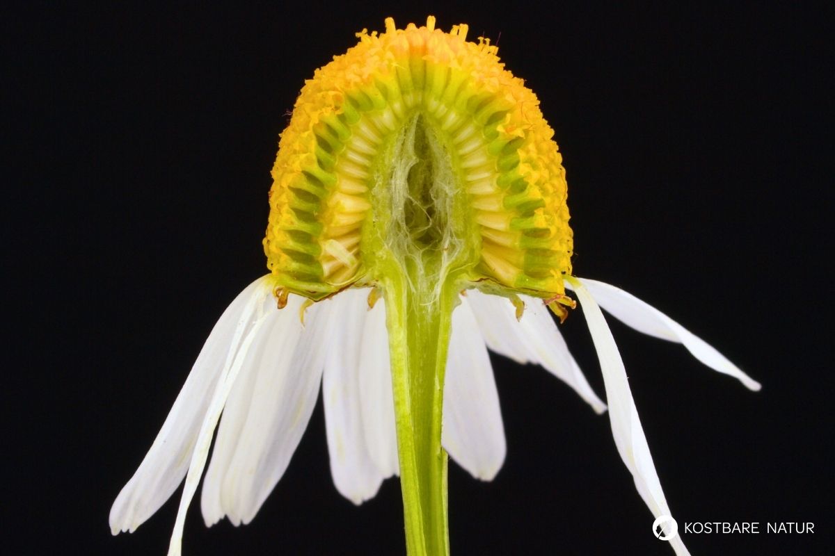 - Das Blütenkörbchen ist innen hohl, dies ist eines der wichtigsten Unterscheidungsmerkmale zu falschen Kamille