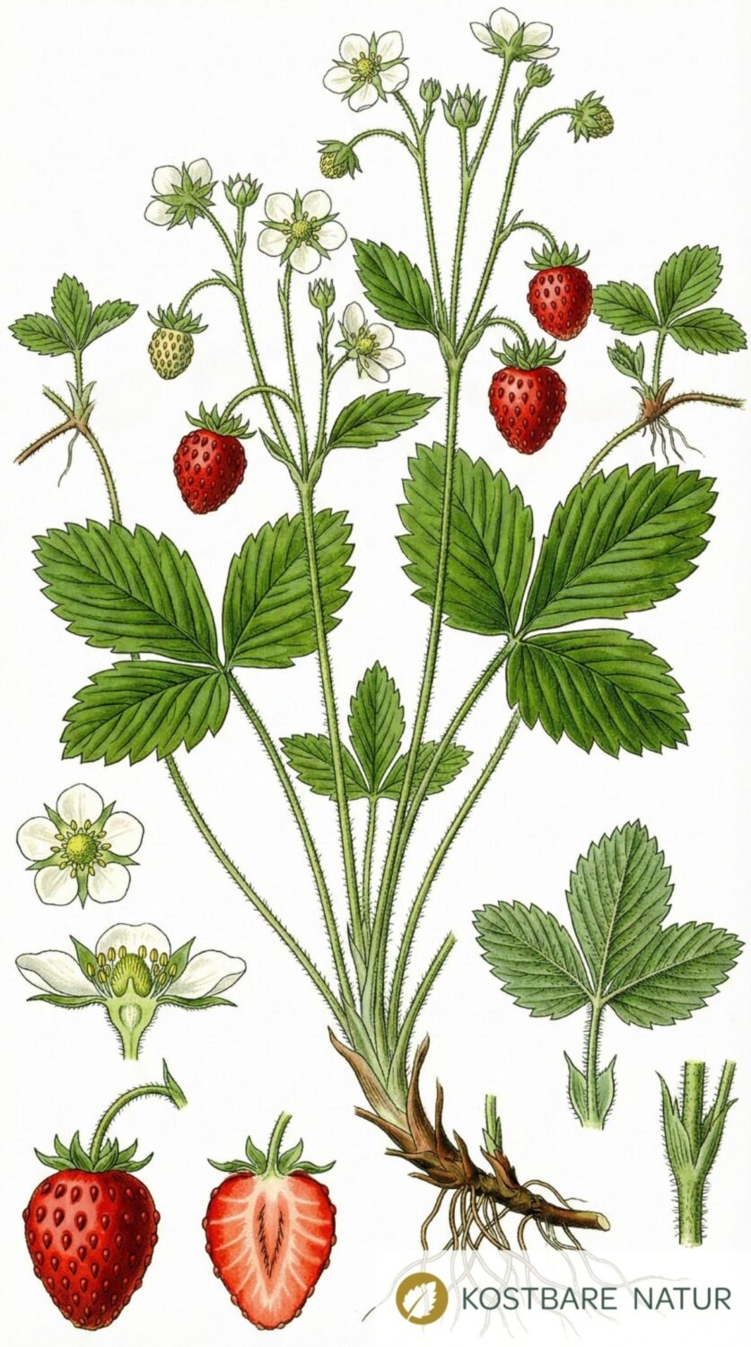 Historisch war die Erdbeere also nicht immer die üppige, große Frucht, die du heute kennst. Die wilden Vorfahren waren meist kleiner und geschmacksintensiver. Im Laufe der Zeit wurden Sorten gezüchtet, die ertragreicher waren und größere Früchte lieferten. Meine Oma unterschied noch und bezeichnete die Gartenerdbeere als „Ananas“. „Erdbeeren“ waren für sie nur Walderdbeeren.
