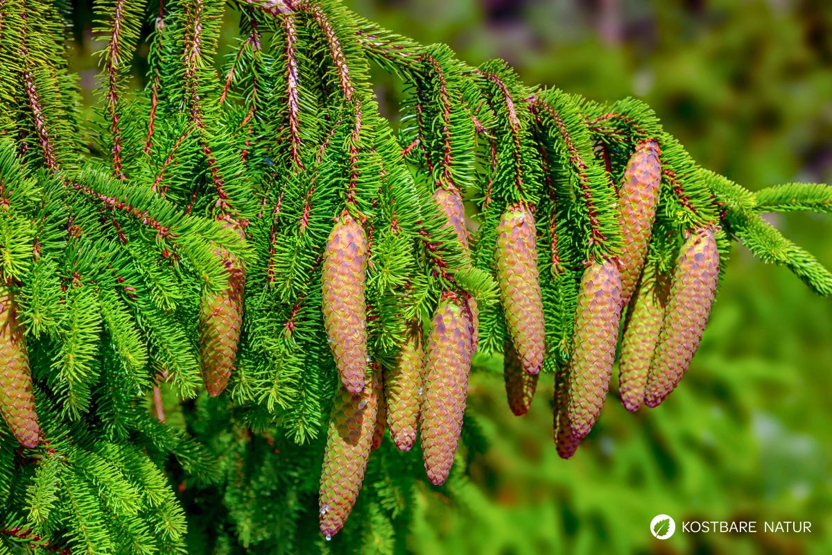 - Auf Nadeln und Zapfen achten, junge hellgrüne Triebe im Frühjahr sammeln, nur von gesunden, nicht behandelnden Bäumen ernten, sparsam sammeln