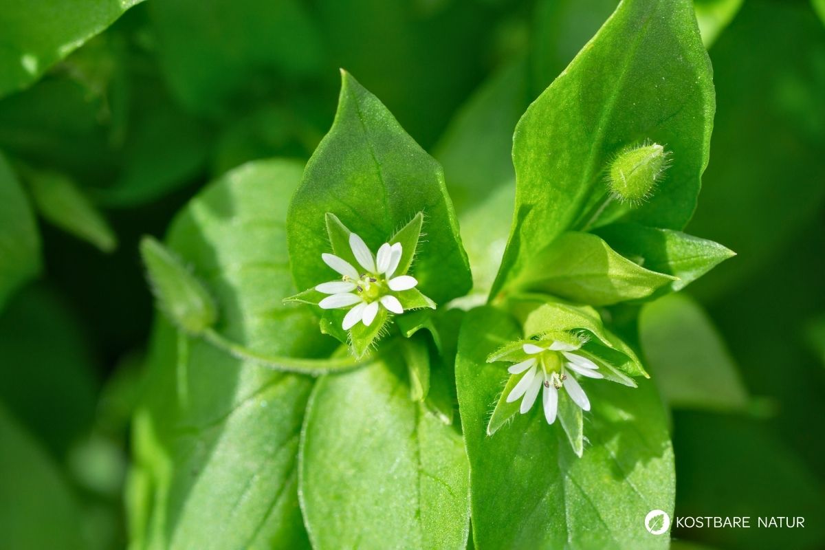 In der Küche ist die Vogelmiere eine wahre Delikatesse. Du kannst sie vom zeitigen Frühjahr bis in den Spätherbst sammeln. Besonders die jungen Triebe eignen sich hervorragend als Salatgrundlage, grüne Zugabe im Smoothie oder zarte Zutat auf dem Butterbrot.