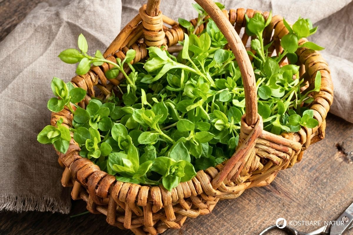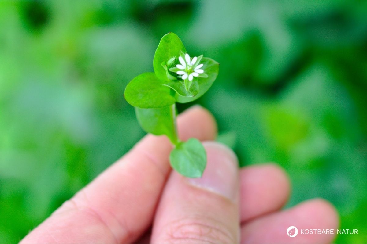 - Flach wachsende, mild schmeckende Wildpflanze mit sternförmigen Blüten