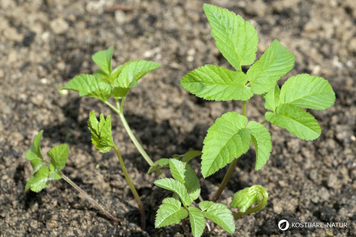 Giersch eignet sich auch für einen selbst gemachten Dünger. Er ist reich an Mineralien, insbesondere Kalium und hilft stark zehrenden Pflanzen wie Kartoffeln, Gurken, Tomaten, Paprika oder Kürbis.