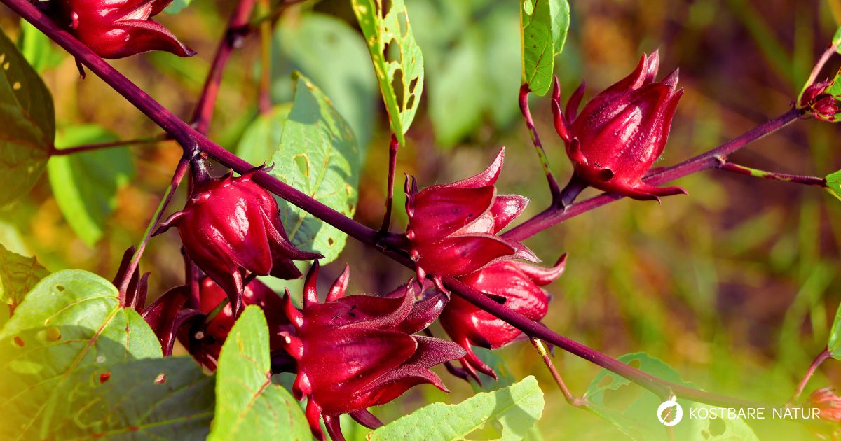 - Besonders auffällig sind die fleischigen, roten Kelche nach der Blüte. Ernten, wenn die Kelche kräftig rot und saftig sind. Blätter können grünlich sein, lappig und gezahnt. Standort warm, sonnig; bei Wildwuchs in tropischer/subtropischer Region oder im Kulturstandort.
