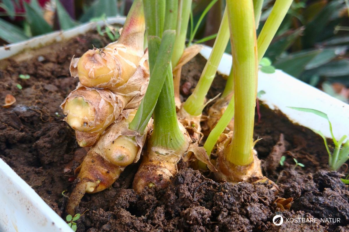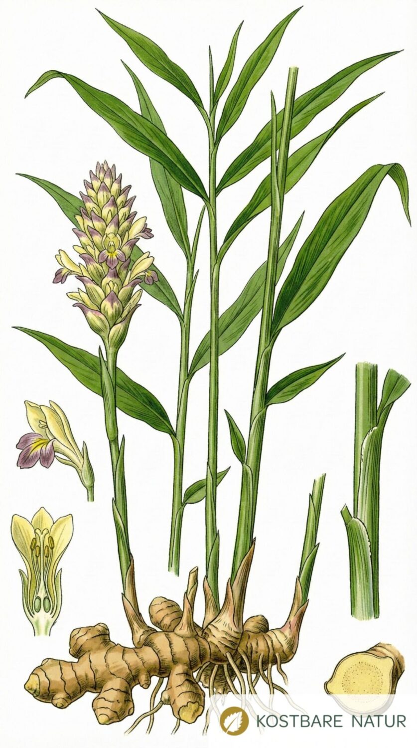 - Tropische Heil- und Gewürzpflanze mit knolligem Rhizom