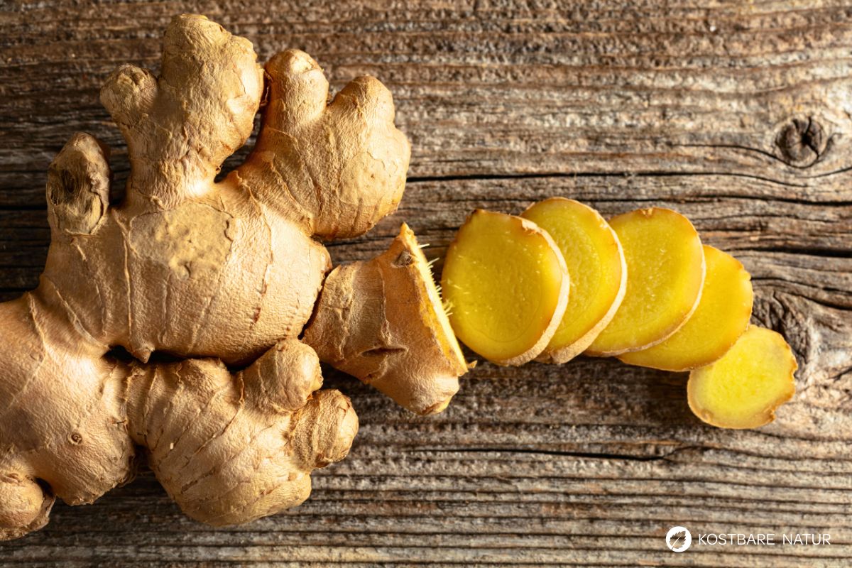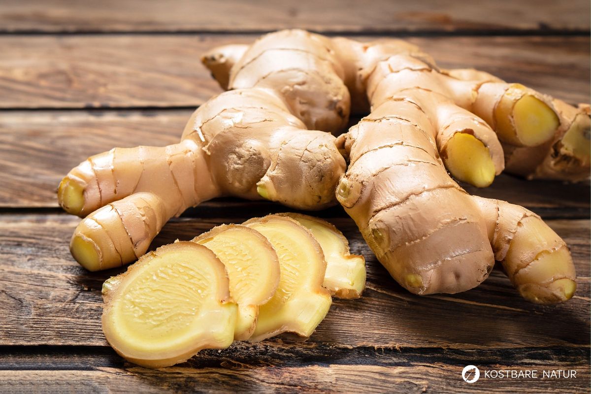 - ätherische Öle, Borneol, Cineol, Gingerol, Shogaol, Vitamin C