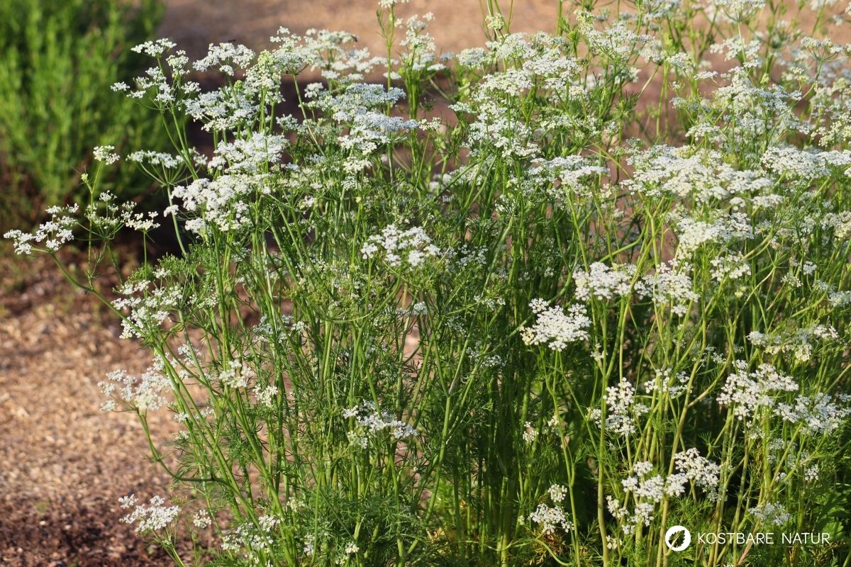 - Aromatische, einjährige Pflanze mit filigranen Blättern und Doldenblüten, deren Samen stark aromatisch sind.