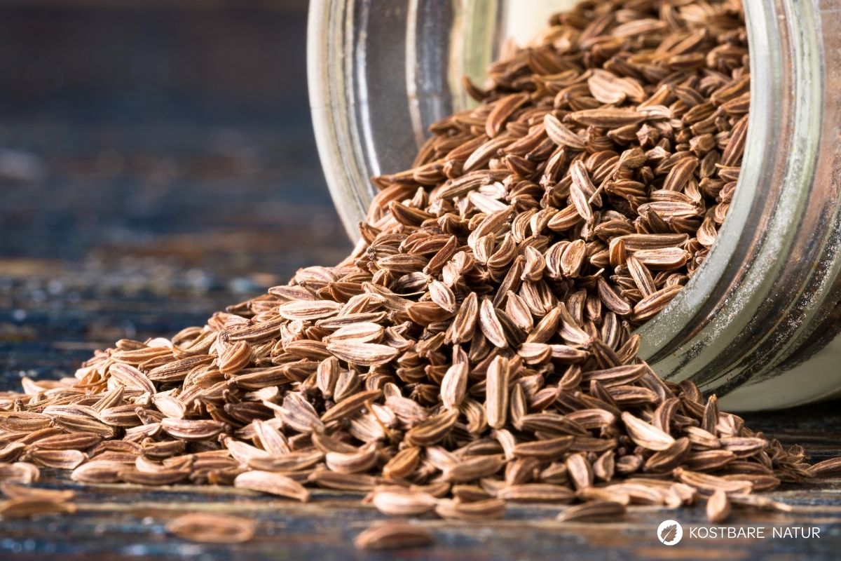 Bei Verdauungsbeschwerden ist Kümmel besonders bekannt. Wissenschaftlich wurde gezeigt, dass die im Kümmel enthaltenen ätherischen Öle (vor allem Carvon und Limonen) krampflösend und karminativ wirken.2 Sie können Blähungen reduzieren und die Verdauung unterstützen. Studien legen nahe, dass Kümmelöl in Kombination mit Pfefferminzöl Beschwerden des Verdauungstraktes lindern kann.3