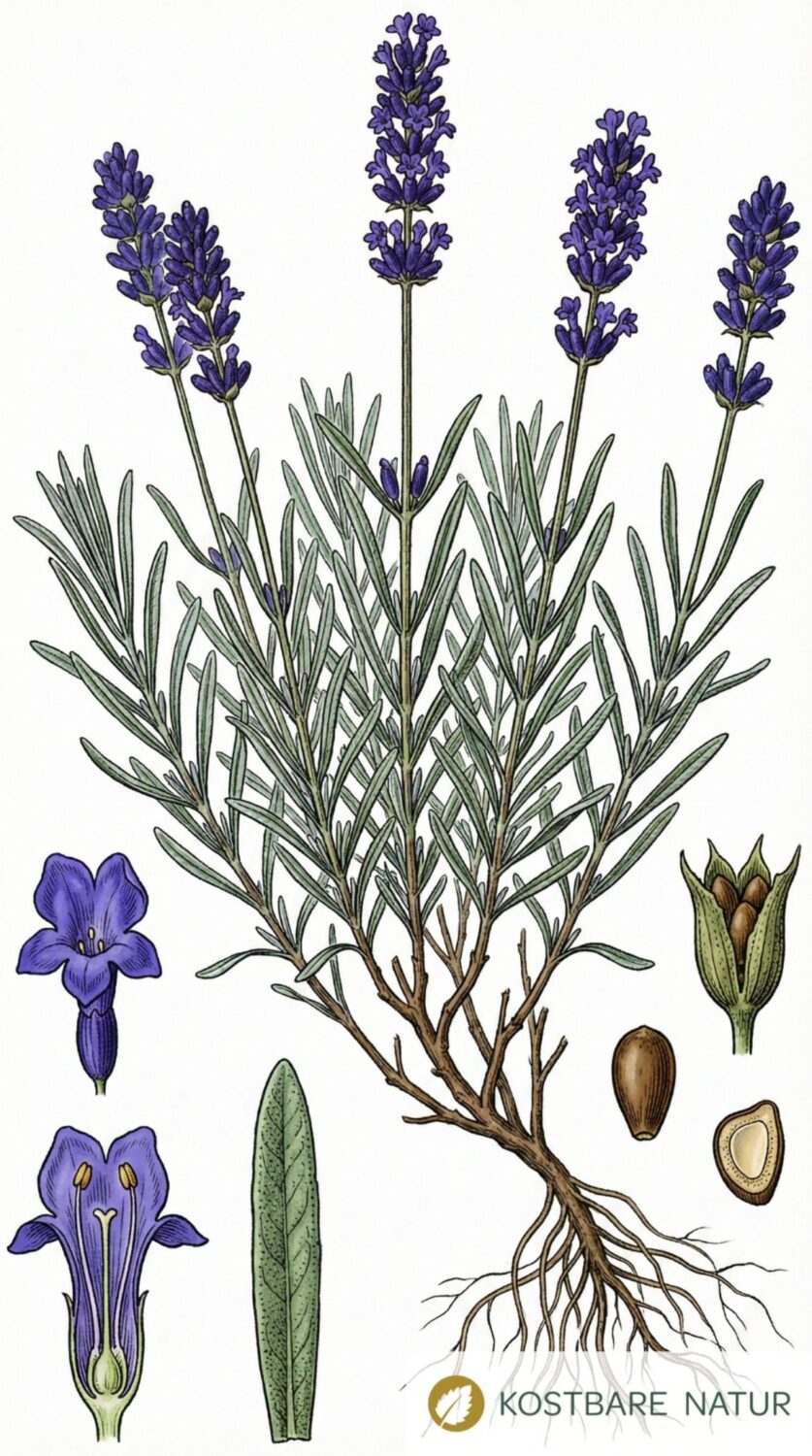 In mittelalterlichen Klostergärten war Lavendel ein fester Bestandteil der Heilpflanzensammlungen.1 Hildegard von Bingen empfahl ihn bei Kopfschmerzen und nervöser Unruhe. Im 19. Jahrhundert setzten Parfumeure in der Provence vermehrt auf Lavendel, was zu seiner heutigen Verbreitung als Duft- und Heilpflanze beitrug. Auch im bäuerlichen Alltag wurde Lavendel verwendet: als Mottenschutz im Wäscheschrank, gegen Kopfläuse und zur Beruhigung bei Einschlafstörungen.