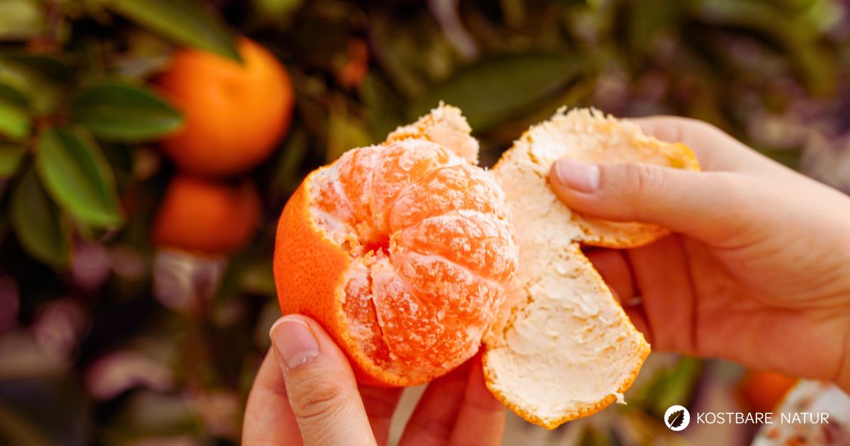 Die Mandarine ist ein kulinarischer Alleskönner! Du kannst sie frisch essen, aber auch in vielen Rezepten verwenden. Essbar sind vor allem die saftigen Segmente und die Schale – in geriebener Form als aromatische Zest –, wenn sie unbehandelt ist. Mandarinen enthalten Vitamin C, das für die Immunabwehr wichtig ist, sowie Flavonoide und Ballaststoffe, die die Verdauung unterstützen und antioxidativ wirken. Mineralstoffe wie Kalium helfen, den Elektrolythaushalt zu regulieren.1
