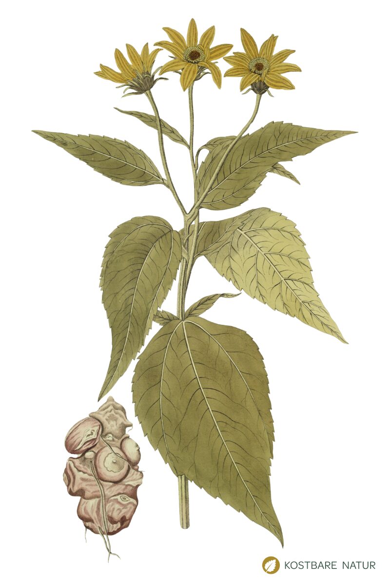 In der Naturheilkunde wird Topinambur vor allem bei Verdauungsproblemen, erhöhtem Blutzucker und zur allgemeinen Kräftigung eingesetzt. Wissenschaftlich erwiesen ist, dass das enthaltende Inulin als Prebiotikum wirkt. Es fördert also das Wachstum gesunder Darmbakterien. Zudem ist es entzündungshemmend und hat krebshemmende Eigenschaften. Auch für Menschen mit Insulinresistenz ist Topinambur gut geeignet.3