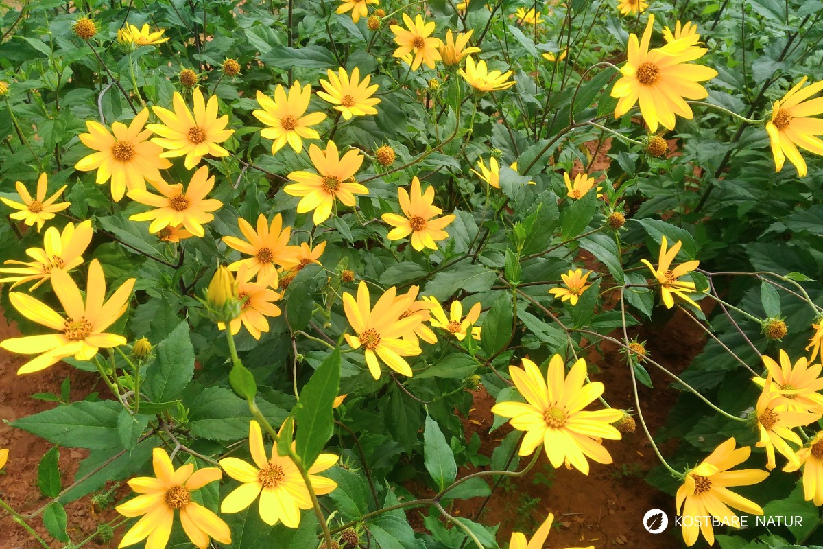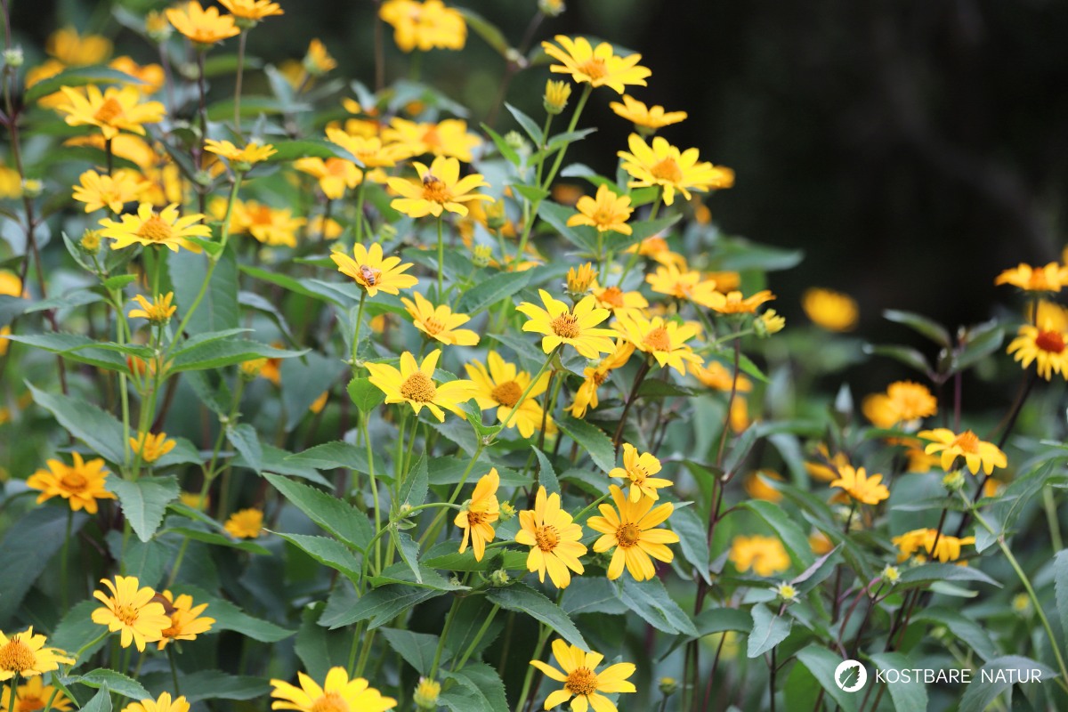 Bei guter Versorgung mit Feuchtigkeit und Nährstoffen erreicht Topinambur schnell eine stattliche Wuchshöhe von bis zu drei Metern. Die Stängel stehen in dichten Bündeln zusammen und eignen sich optimal als pflanzlicher Sichtschutz während der Sommermonate. Seine zahlreichen sonnengelben Blüten machen ihn zudem zu einer schön anzuschauenden Zierpflanze.