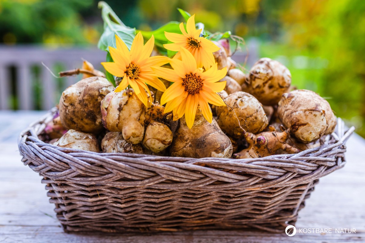 Achtung: Bei übermäßigem Verzehr kann es zu Blähungen kommen. Menschen mit Reizdarm sollten Topinambur nur vorsichtig ausprobieren.