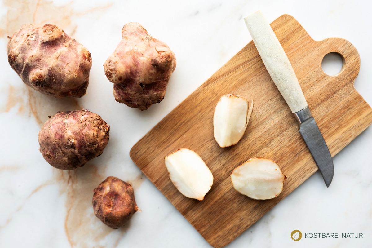Die Kombination aus Ballaststoffen, Mineralstoffen und wenig Kalorien macht die Knolle ideal für Diäten oder zur Unterstützung bei metabolischem Syndrom.