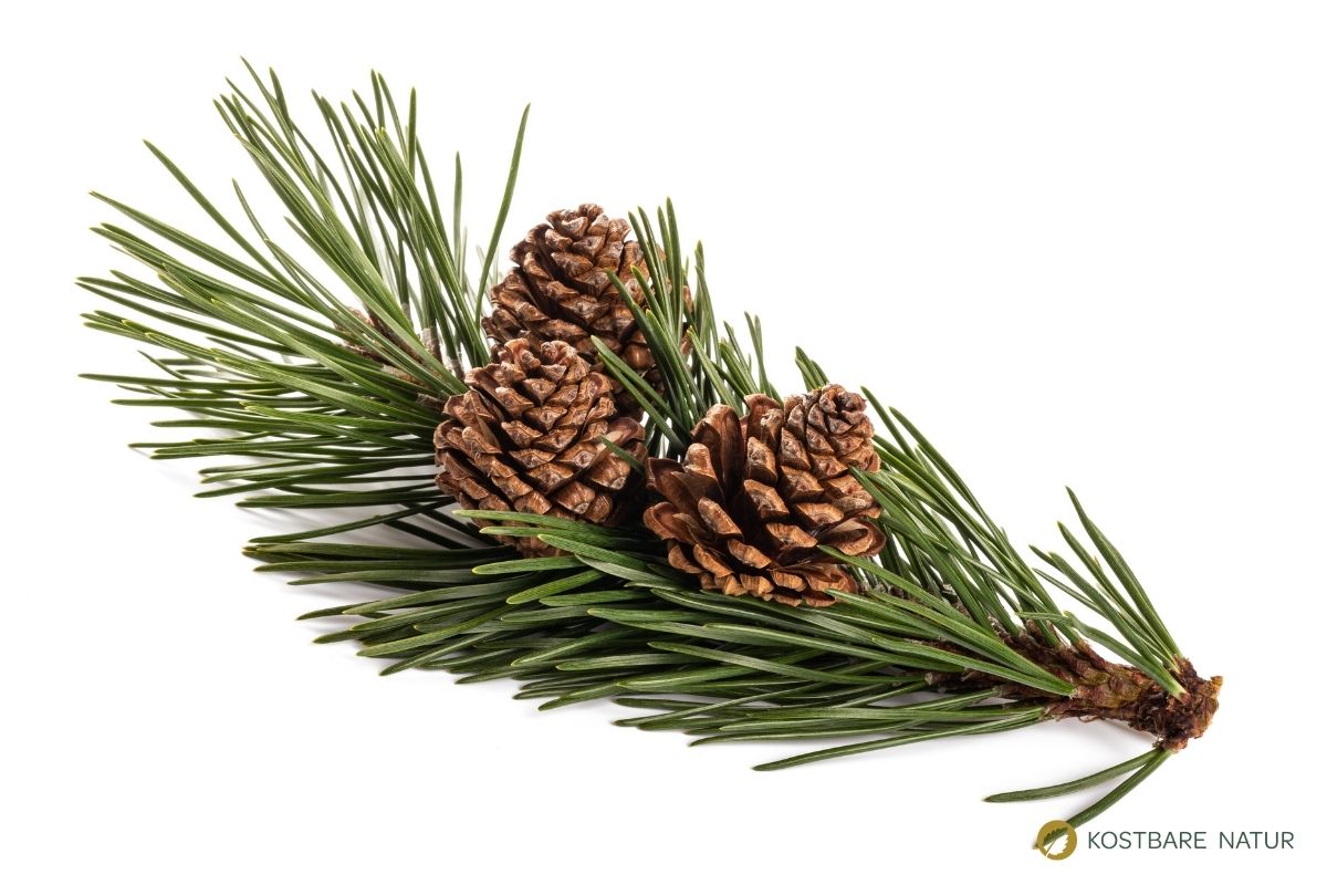 Die Heilkraft der Waldkiefer ist heute sogar wissenschaftlich anerkannt, besonders wenn es um das ätherische Öl geht. Die enthaltenen Wirkstoffe wie Pinen, Limonen und Camphen wirken sekretolytisch, das heißt, sie lösen festsitzenden Schleim in den Bronchien und erleichtern das Abhusten. Ähnliche Wirkungen sind auch von Fichten- und Tannennadelölen bekannt1. Zudem haben sie eine leicht antiseptische Wirkung2, was bei Erkältungen Gold wert ist.