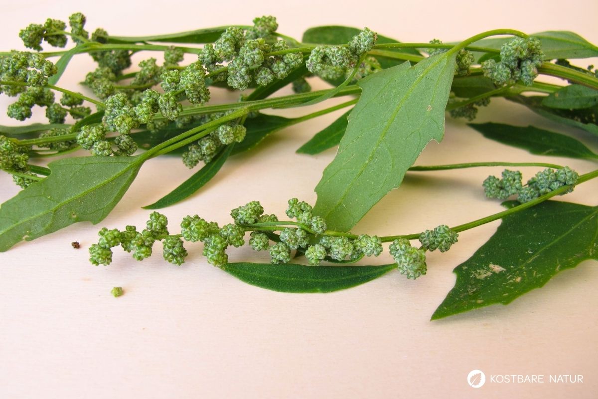 Hinweis: Der Weiße Gänsefuß enthält, genau wie Spinat oder Rhabarber, Oxalsäure3. Menschen mit Nierenproblemen oder einer Neigung zu Harnsteinen sollten die Pflanze daher nur in Maßen genießen oder sie kurz blanchieren und das Kochwasser wegschütten, um den Oxalsäuregehalt zu reduzieren. Bei normalem Verzehr im Rahmen einer abwechslungsreichen Ernährung ist er jedoch absolut sicher und gesund.