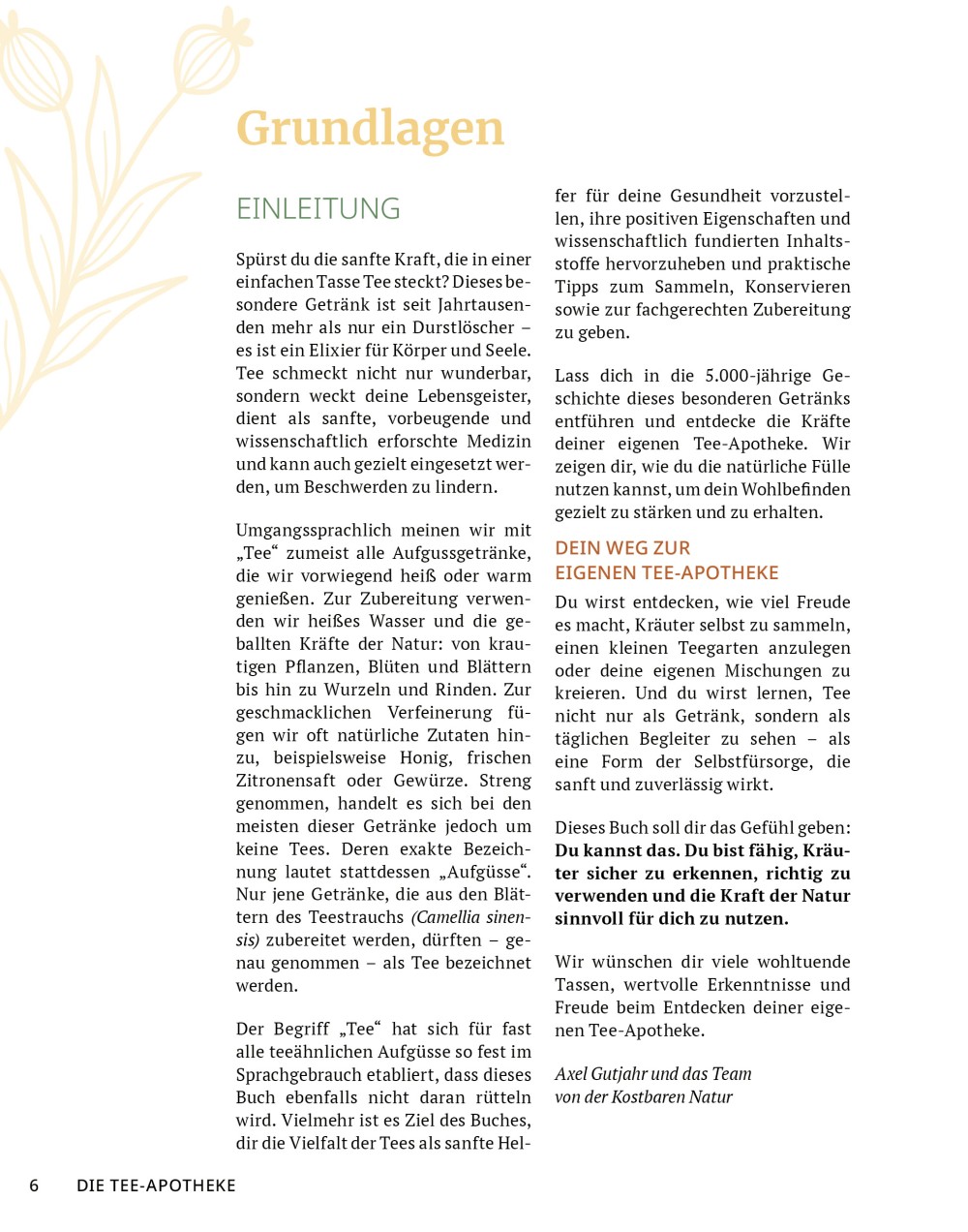 Außerdem haben wir eine Basis-Tee-Apotheke aus 12 essentiellen Heilpflanzen zusammengestellt, damit du sofort loslegen kannst. Darin findest du geeignete Teemischungen inklusive Zubereitungsanleitung für zahlreiche gesundheitliche Beschwerden.
