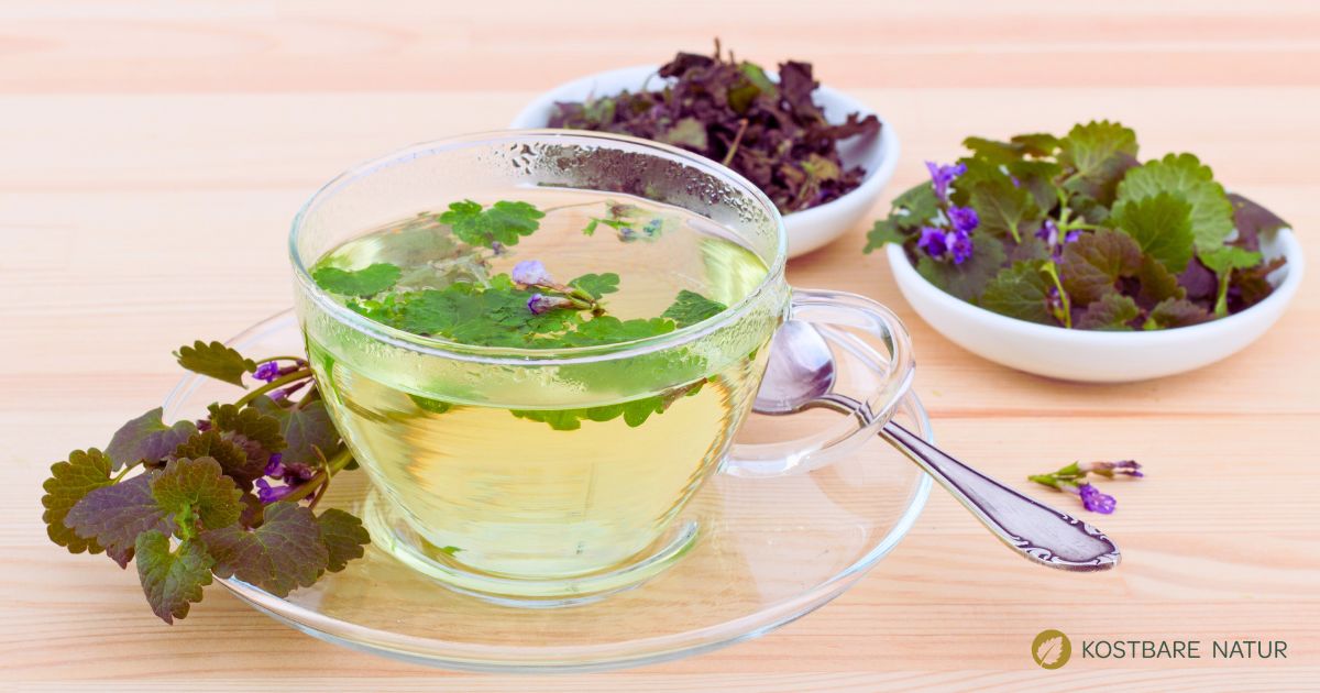 Tipp: Da Gundermann viele fettlösliche ätherische Öle enthält, ist es ebenfalls möglich, ihn mit heißer Milch zuzubereiten. Auf diese Weise werden die ätherischen Öle im Fett der Milch gebunden und können noch besser vom Körper aufgenommen werden.