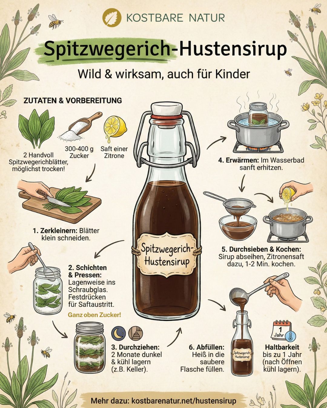 Anleitung für den Hustensirup mit Spitzwegerich