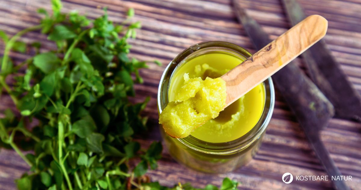 Tipp: In unseren Beiträgen Heilsalben mit Wild- und Heilkräutern einfach selber machen und Heilsalben herstellen – welche Materialien du wirklich brauchst findest du weitere Informationen zum Thema DIY-Kosmetik.